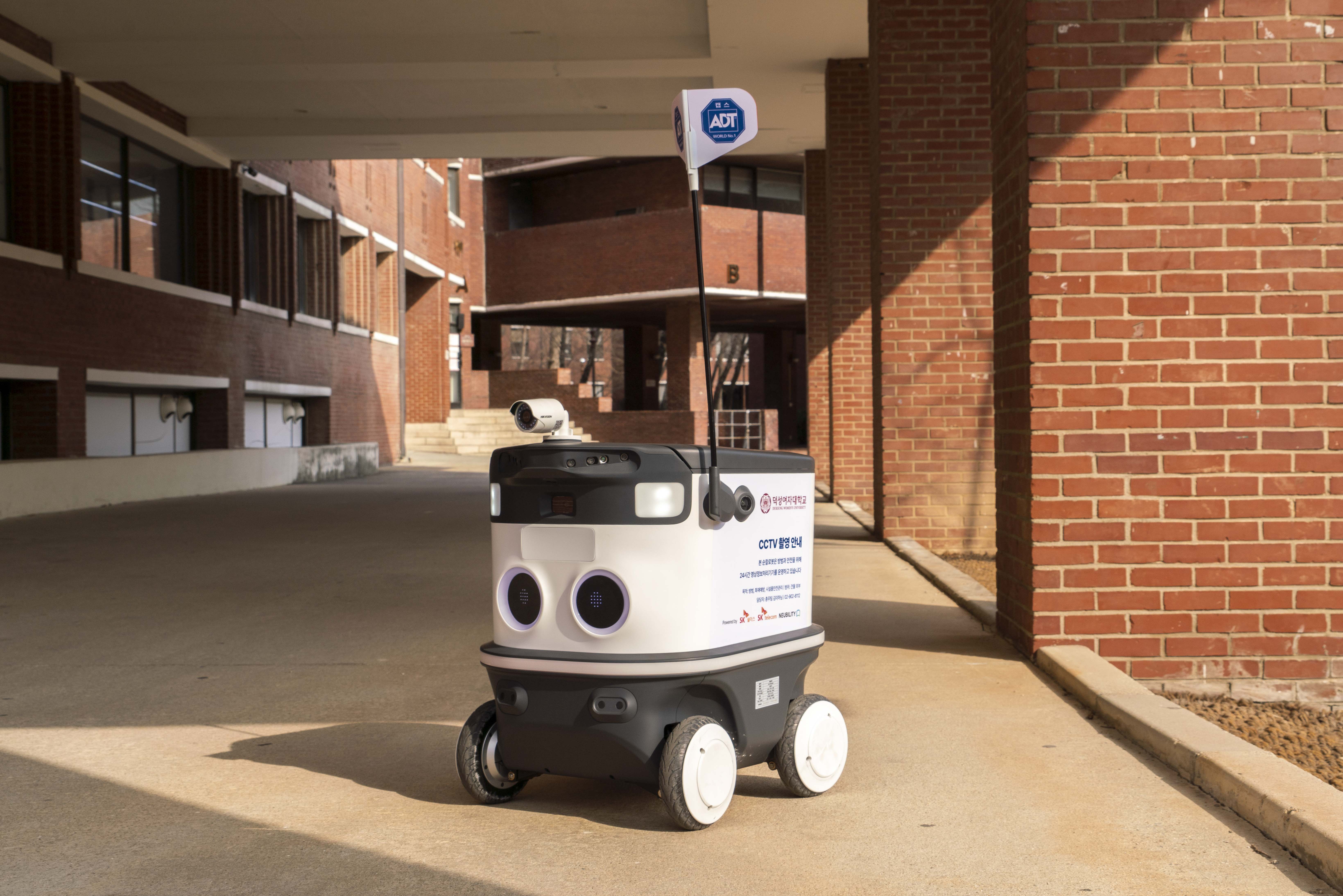 △ SK쉴더스 ‘AI순찰로봇’이 덕성여대 캠퍼스에서 시범 테스트를 진행하고 있는 모습.