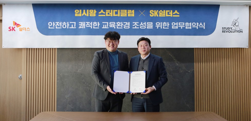 라이프 케어 플랫폼 기업 SK쉴더스(www.skshieldus.com, 대표 박진효)가 스터디레볼루션(대표 최승해)의 독서실 브랜드 입시왕 스터디클럽과 함께 관리형 독서실 솔루션 개발을 위한 업무협약을 체결했다고 13일 밝혔다.