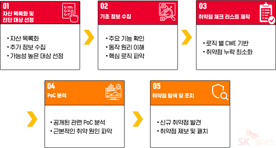 ⑤ 취약점 탐색 및 조치: 신규 취약점 발견, 취약점 제보 및 패치